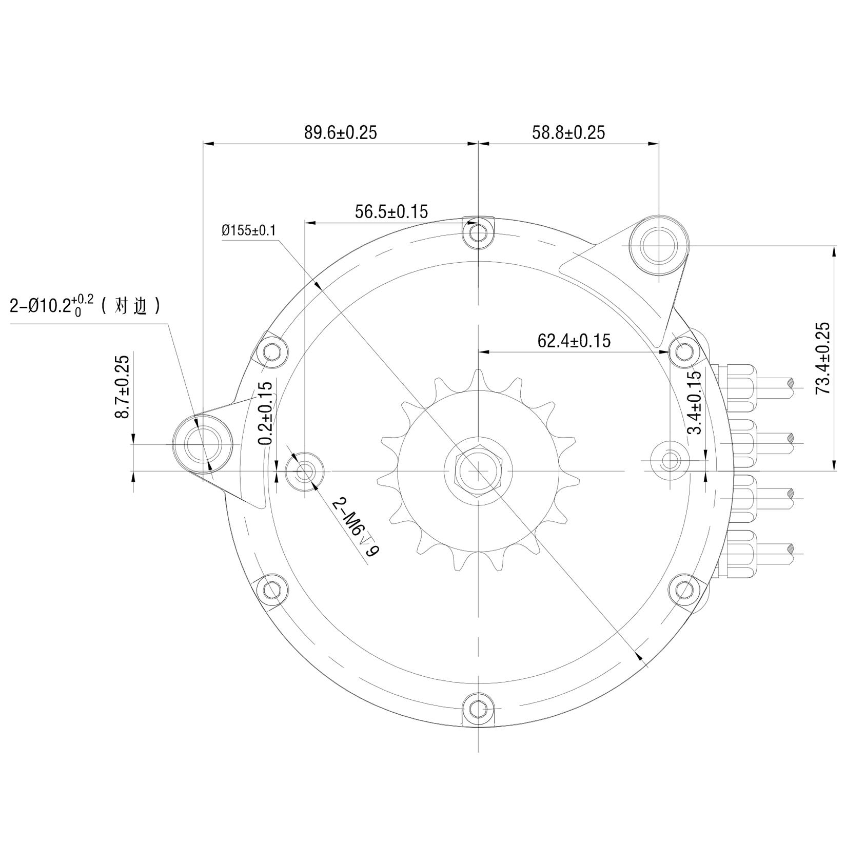 安裝孔直徑: 4-φ10.2